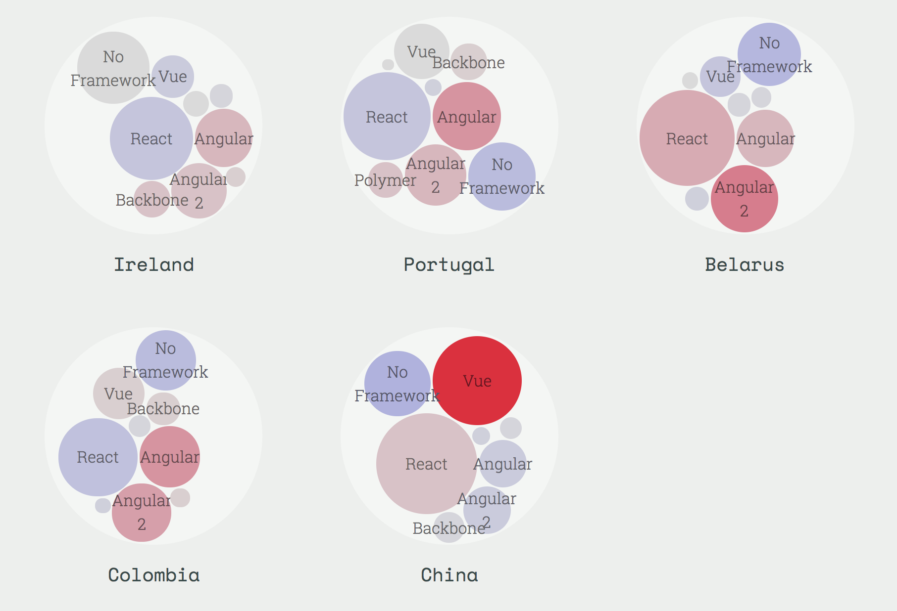 图:JavaScript前端库,从最低收入(左)到最高收入(右)