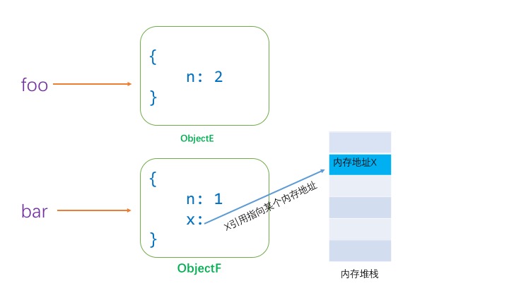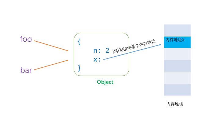 1.第一第二行代码很简单,就是把一个对象({n: 1})赋给 foo, 然后通过 foo 再把对象赋值给 bar。这时候 bar 和 foo 存的都是对象 {n: 1} 的引用。